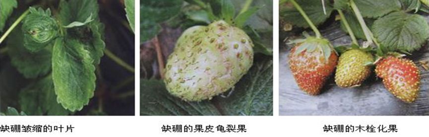 此时要注意,如果草莓已经出现缺钙、缺硼的症状,并不一定是因为土壤中所含有的钙、硼元素不足而导致作物缺素,也有可能是因为土壤中氮元素过量,影响作物的钙、硼元素吸收,或者土壤板结、盐渍化严重影响作物的根系发育而抑制草莓植株对微量元素的吸收。不要一味的冲施各种元素肥,要先对植株缺素的根本原因进行判断,对症下药,根据实际种植情况选用合理的管理方法。