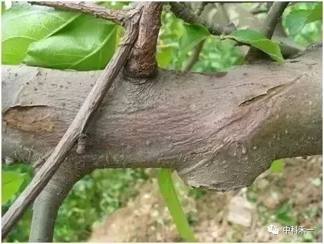 溃疡型主要危害结果树的主干和主枝,发病盛期在冬春季和夏秋季,主要危害衰弱树。