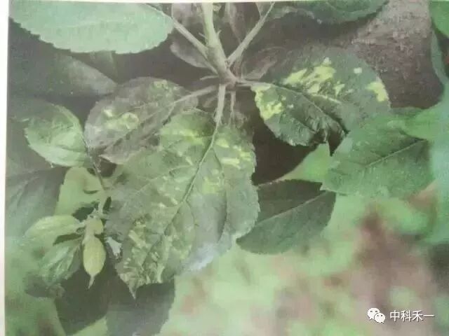 首次发病多发于 5至6 月,在果树的出叶时期,主要会影响苹果树的幼叶与树梢。